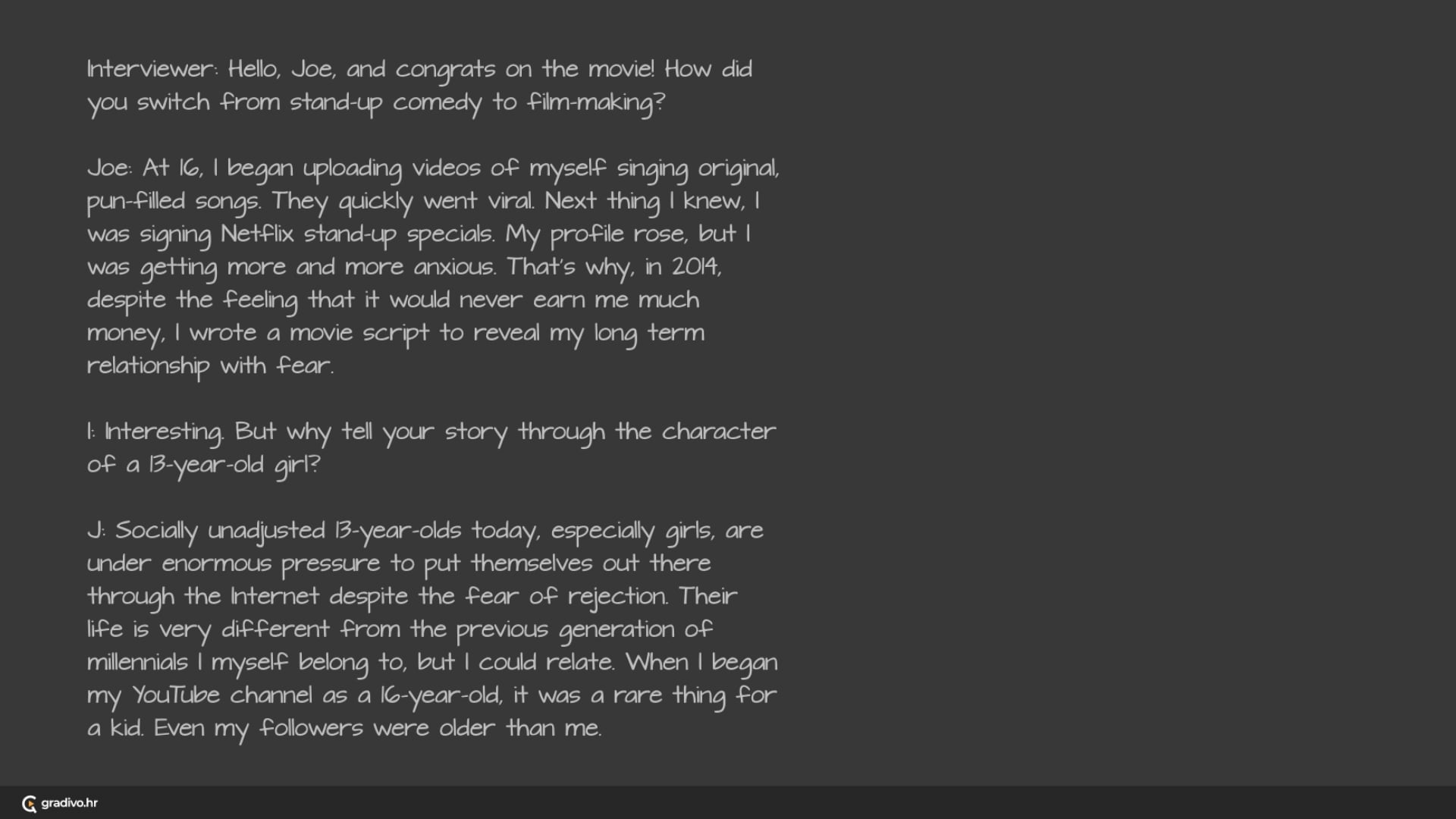 Why was Joe studying the videos of unpopular young YouTubers?