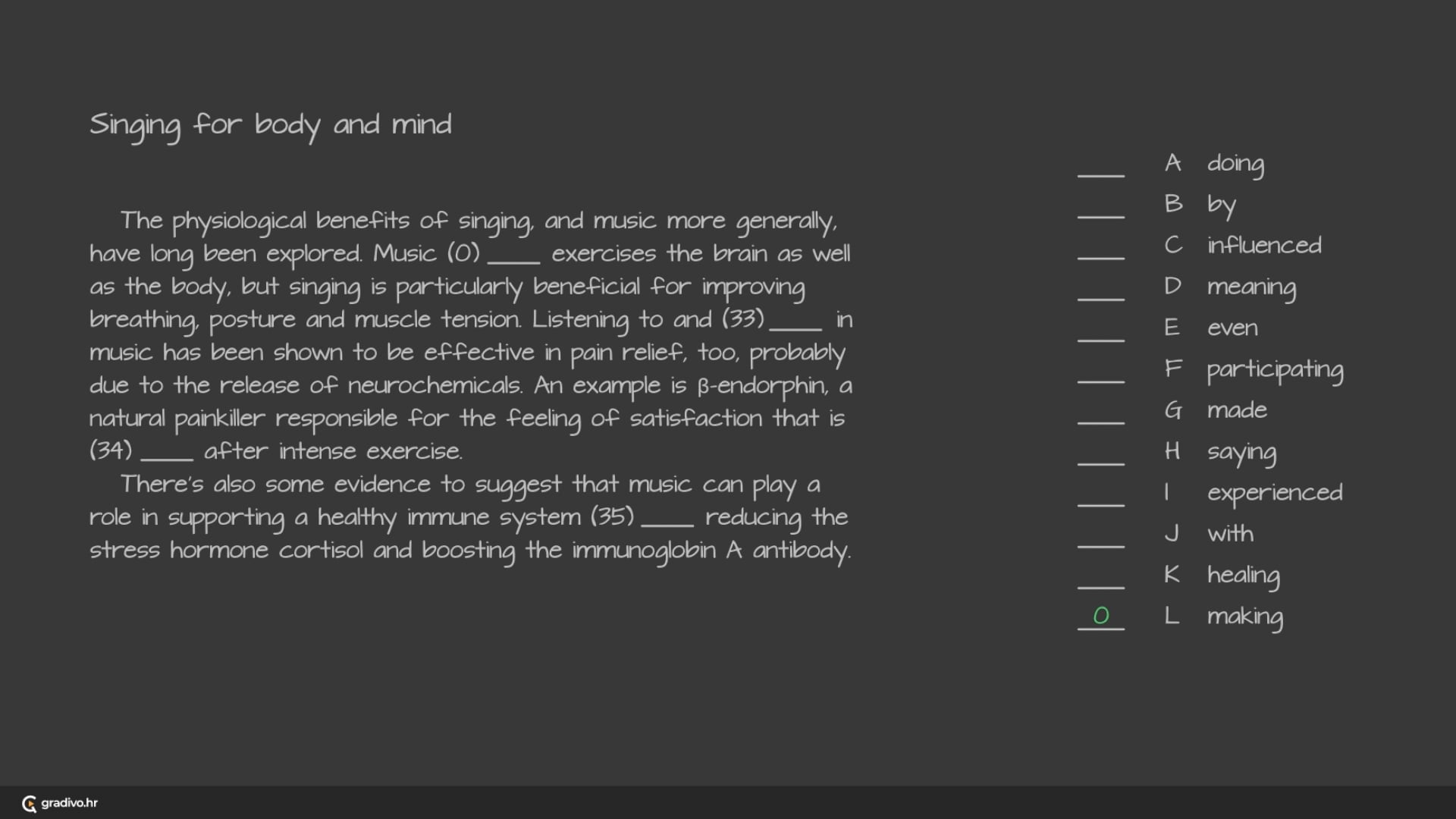 The physiological benefits of singing, and music more generally, have long been explored. Music (0) making exercises the brain as well as the body, but singing is particularly beneficial for improving breathing, posture and muscle tension.