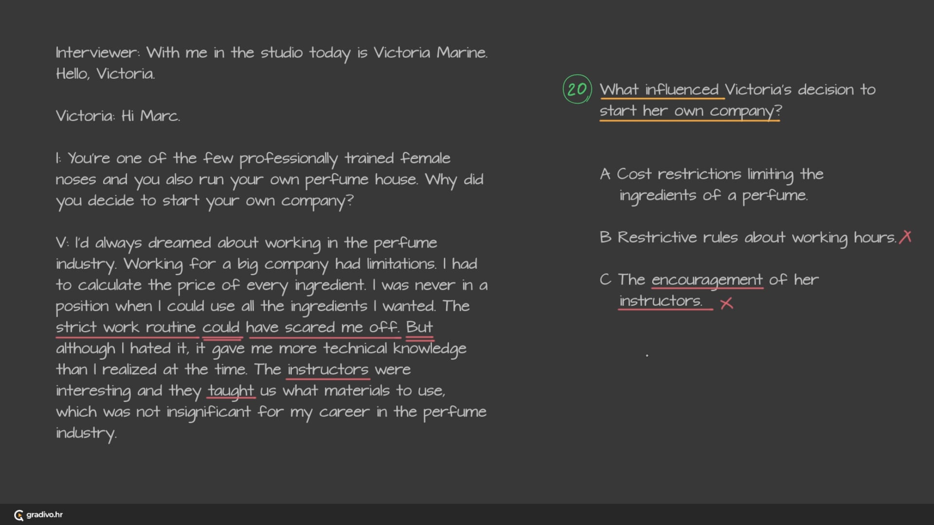You will hear a radio interview with a famous nose, Victoria Marine, about creating perfumes.