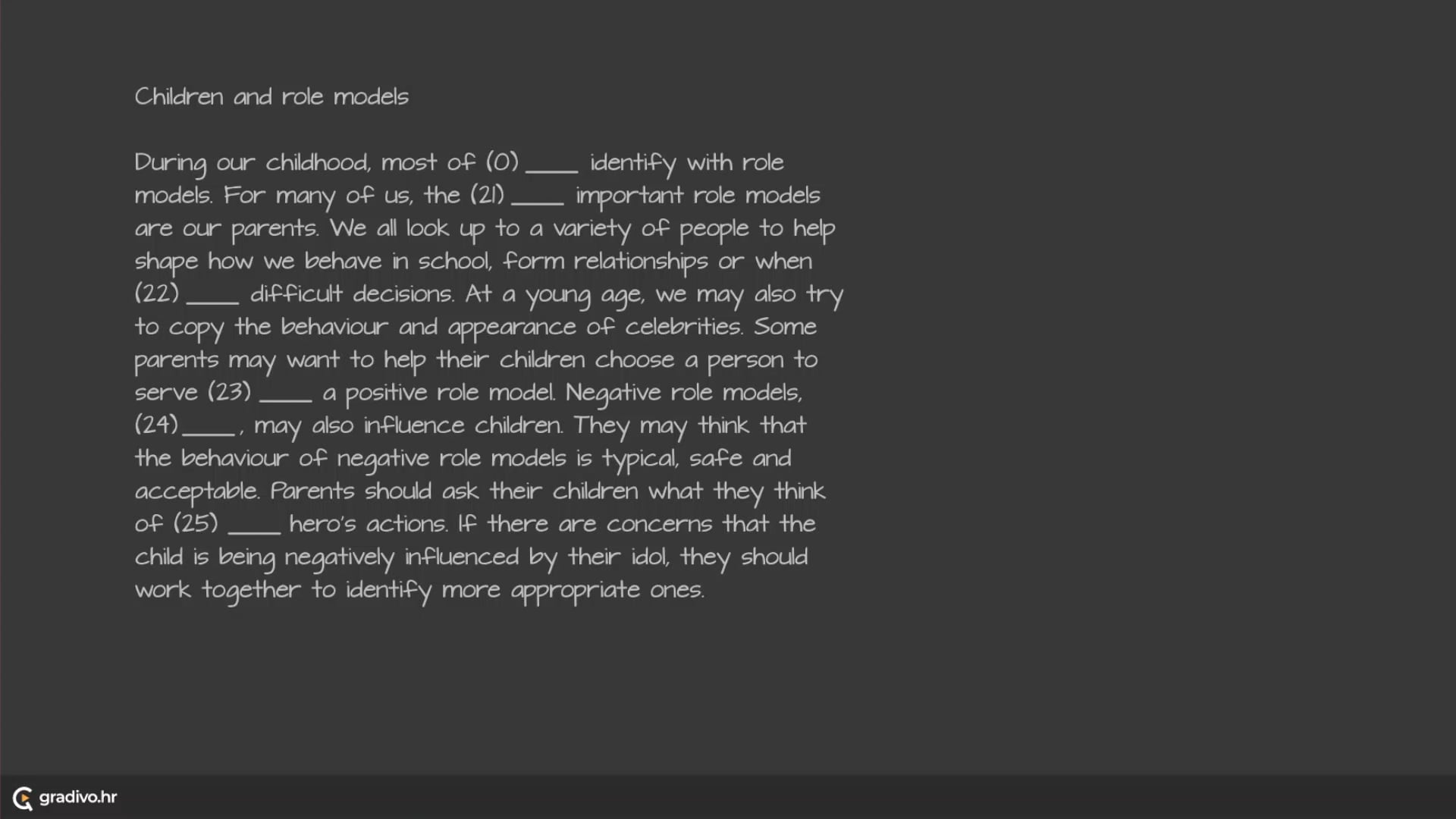 During our childhood, most of (0) us identify with role models.