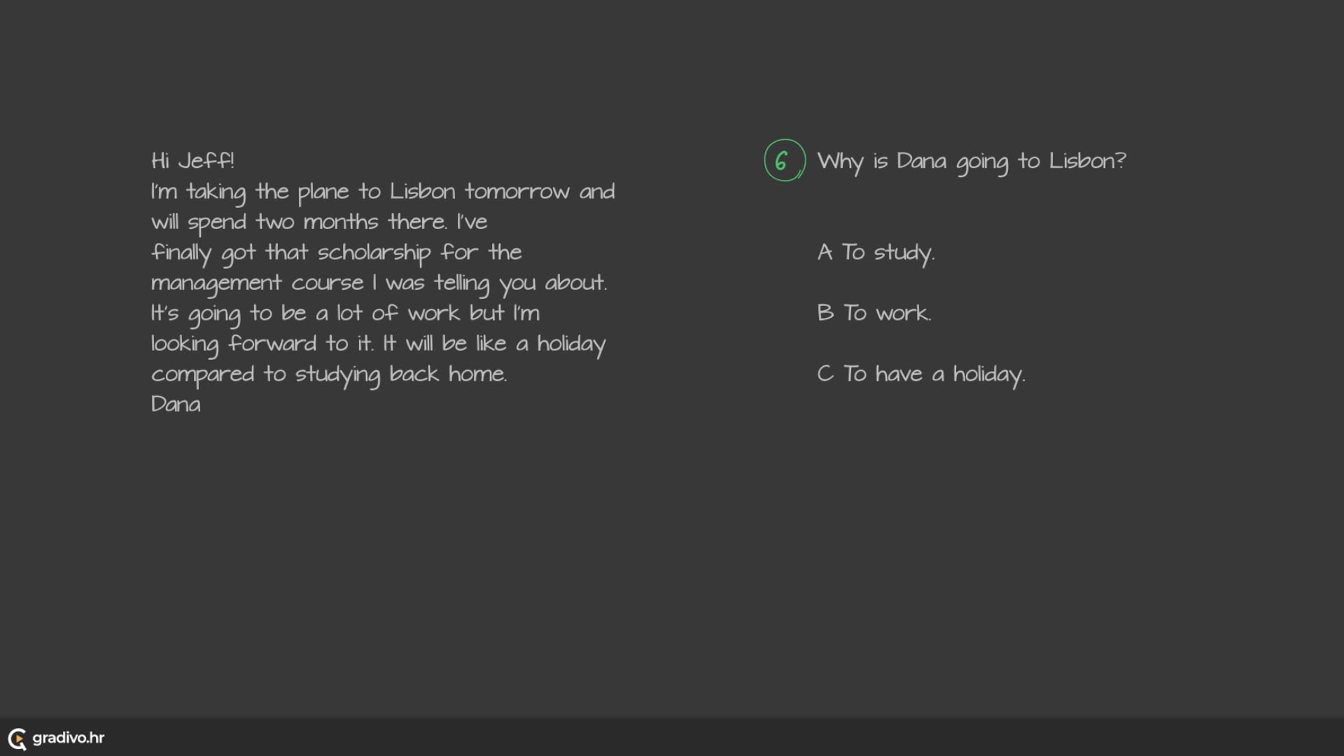 I’m taking the plane to Lisbon tomorrow and will spend two months there. I’ve finally got that scholarship for the management course I was telling you about. It’s going to be a lot of work but I’m looking forward to it. It will be like a holiday compared to studying back home.