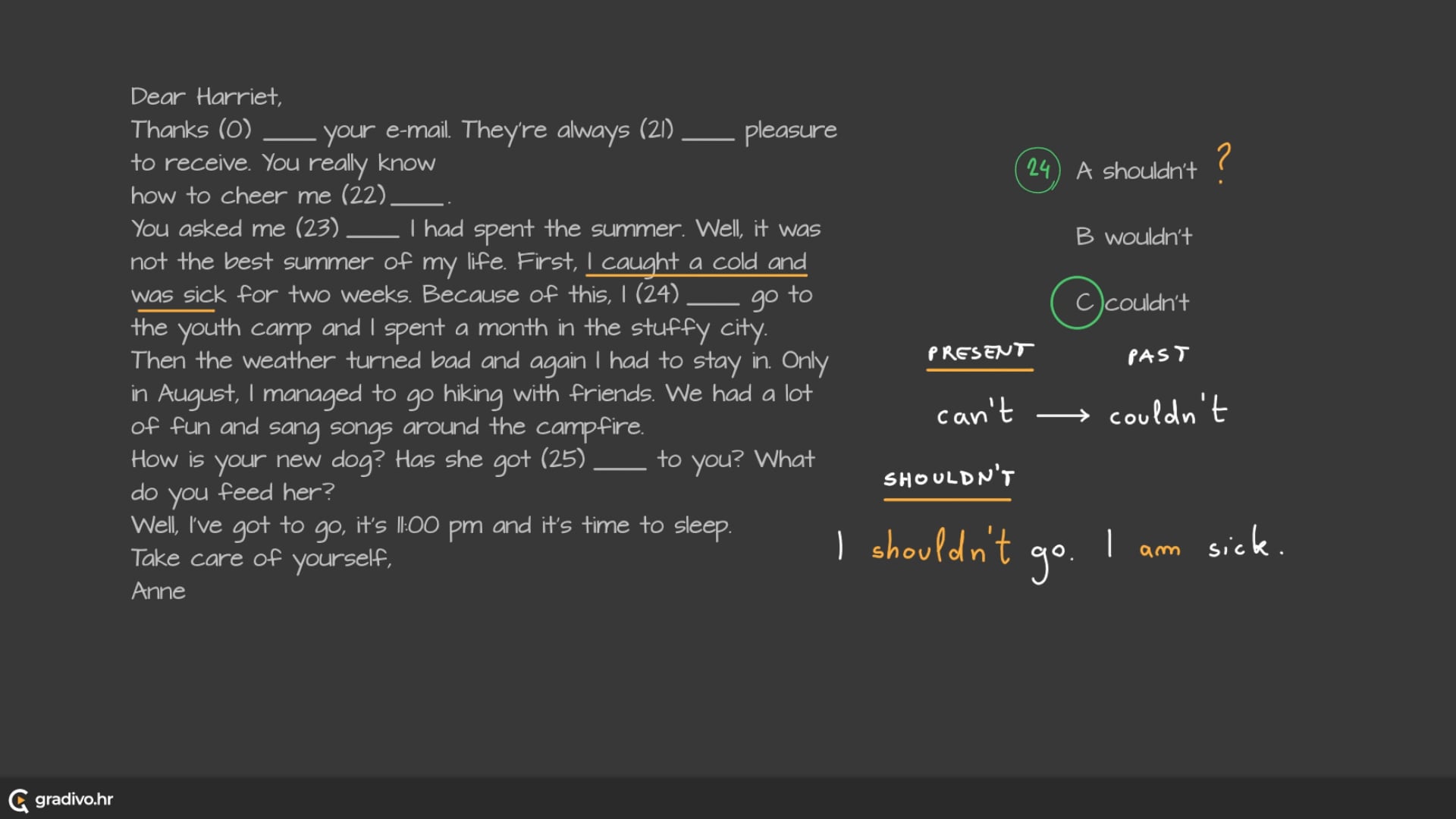 I had spent the summer. Well, it was not the best summer of my life. First, I caught a cold and was sick for two weeks.