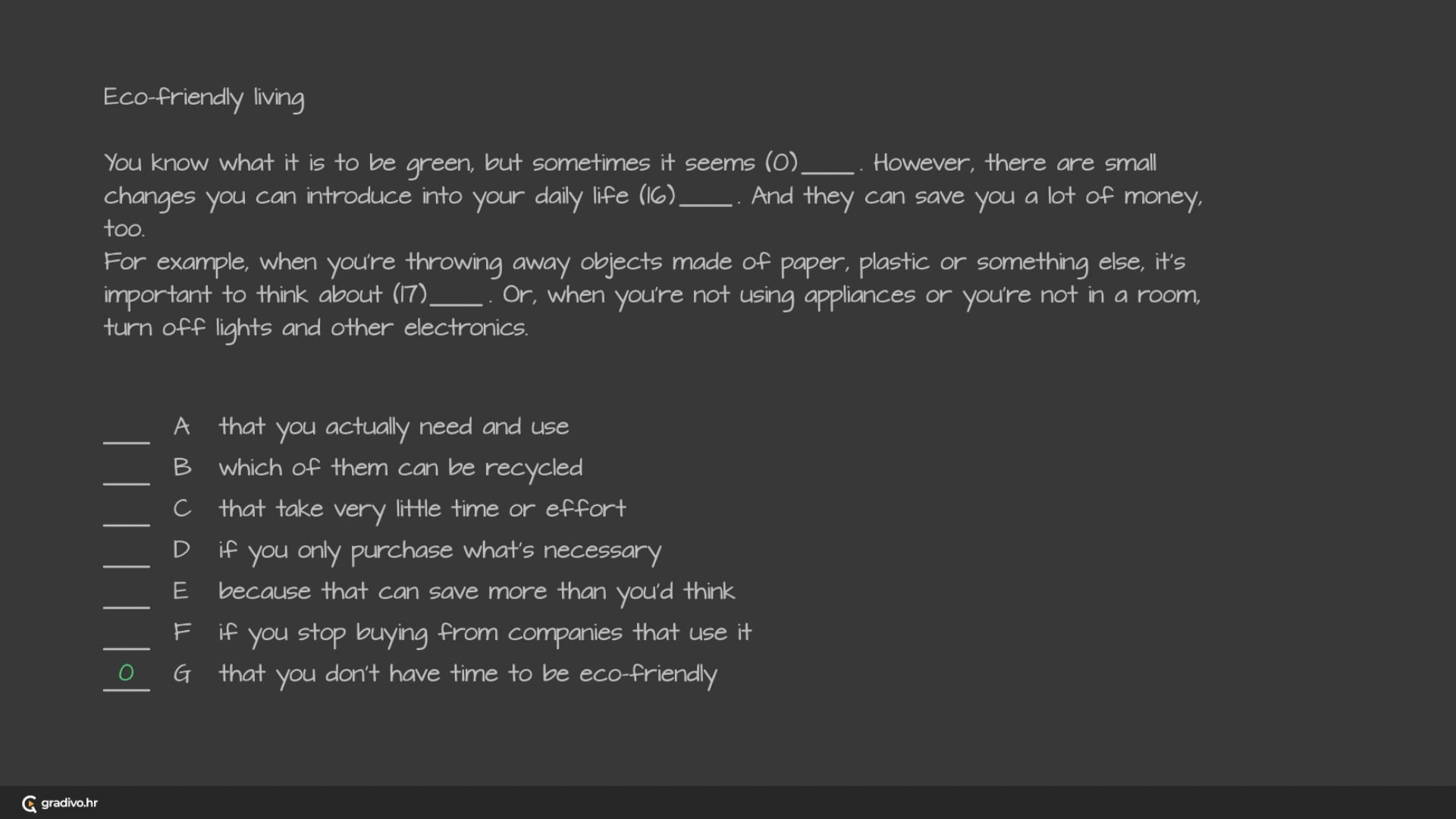 You know what it is to be green, but sometimes it seems (0) that you don’t have time to be eco-friendly.