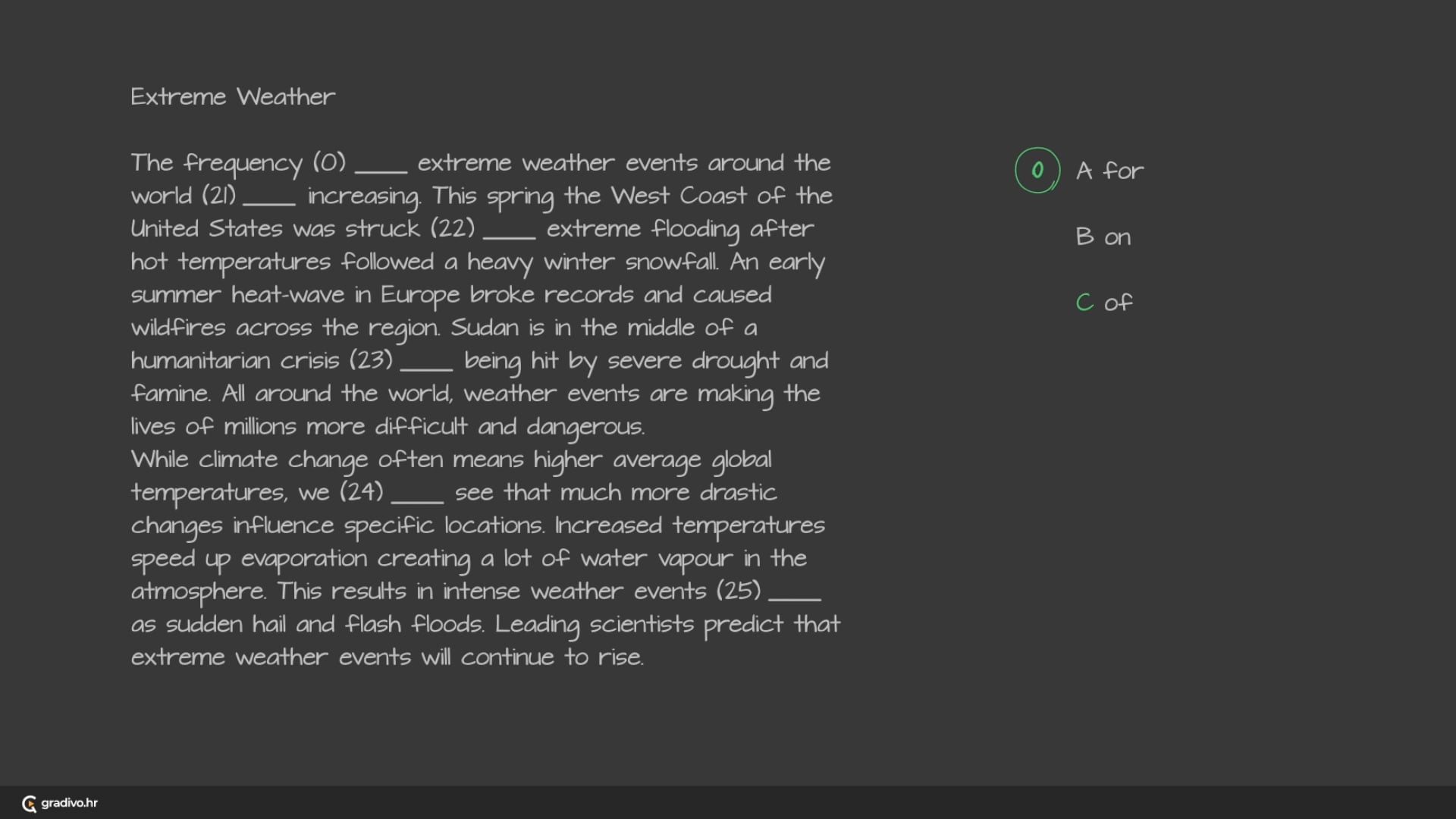 While climate change often means higher average global temperatures, we (24)