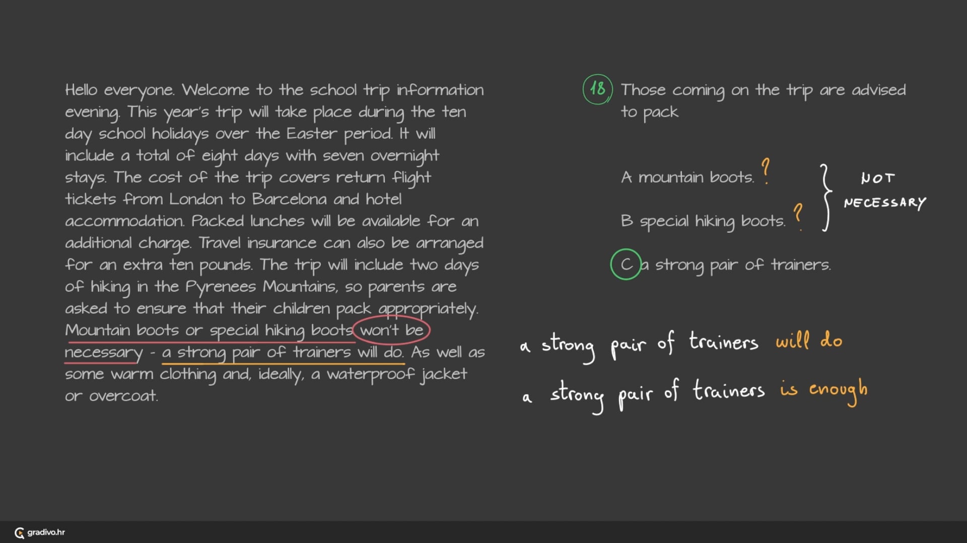 You will hear a teacher describing a school trip to parents.