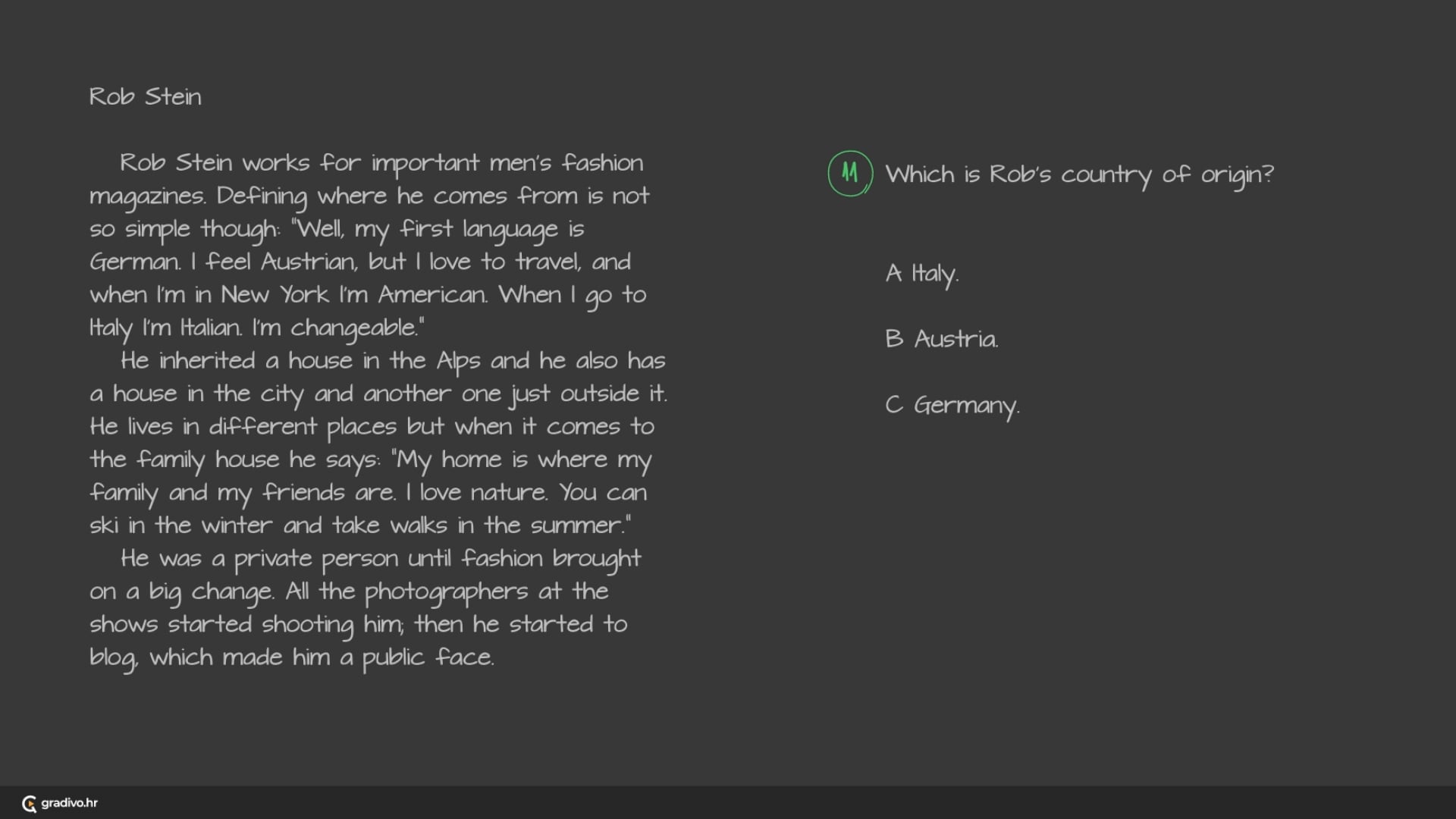 Rob Stein works for important men’s fashion magazines. Defining where he comes from is not so simple though: “Well, my first language is German. I feel Austrian, but I love to travel, and when I’m in New York I’m American. When I go to Italy I’m Italian. I’m changeable.”