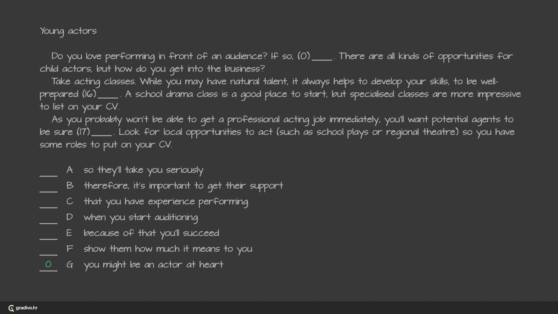 As you probably won’t be able to get a professional acting job immediately, you’ll want potential agents to be sure (17)