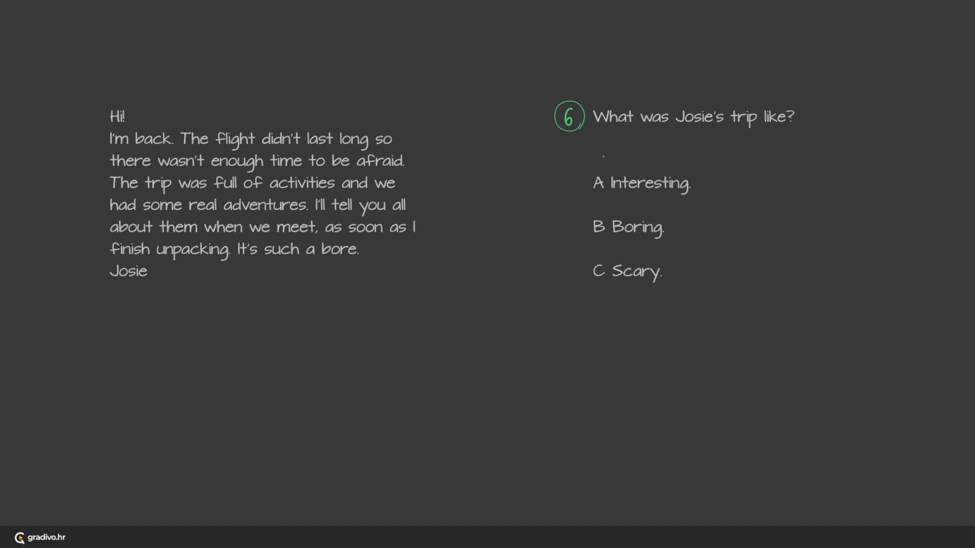I’m back. The flight didn’t last long so there wasn’t enough time to be afraid. The trip was full of activities and we had some real adventures. I’ll tell you all about them when we meet, as soon as I finish unpacking. It’s such a bore.