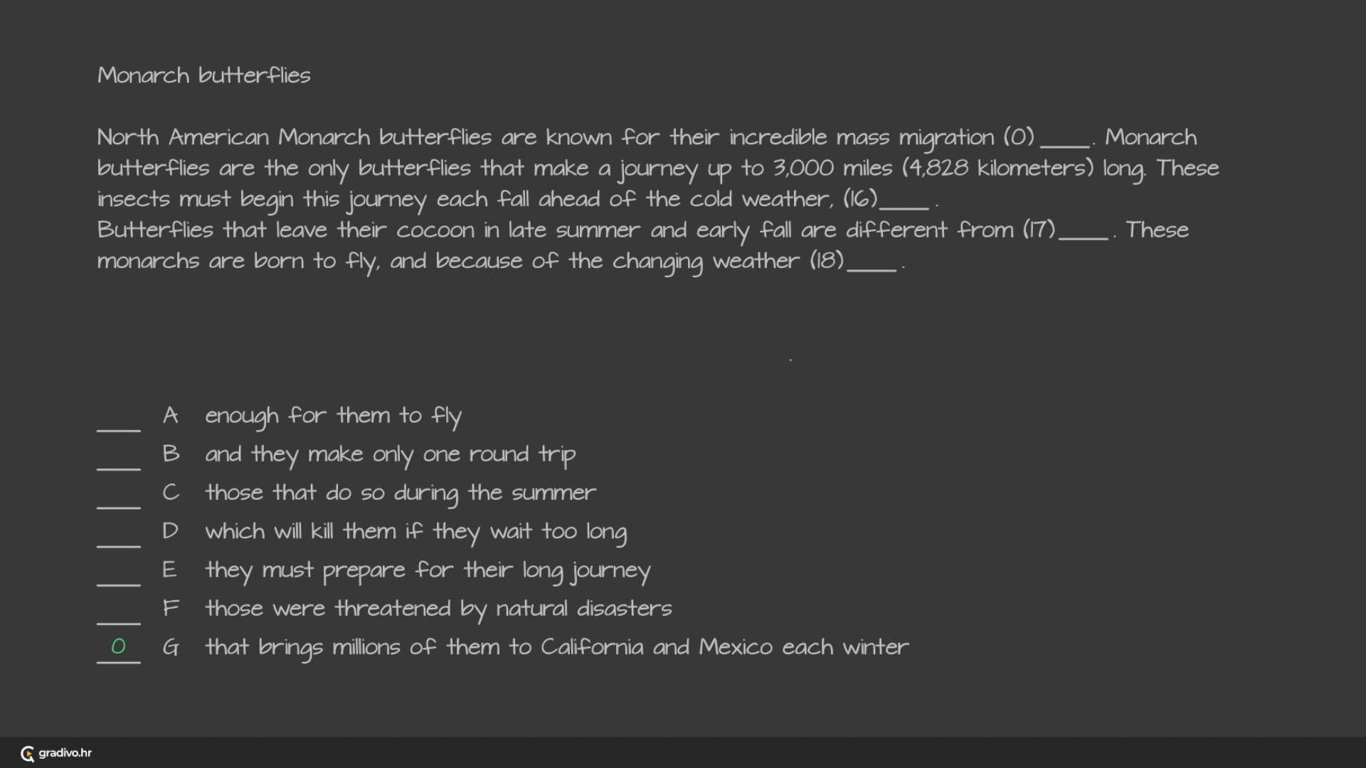 These insects must begin this journey each fall ahead of the cold weather, (16)