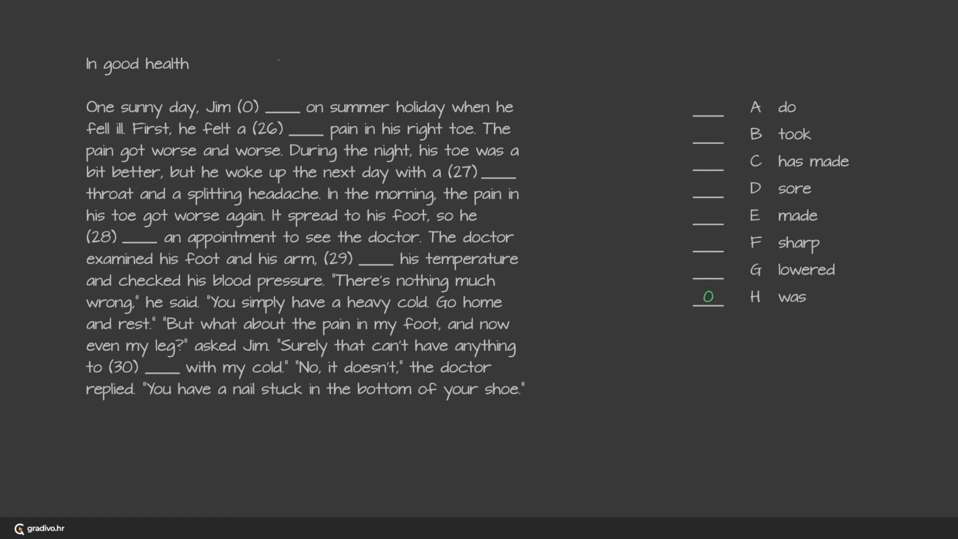 One sunny day, Jim (0) was on summer holiday when he fell ill.