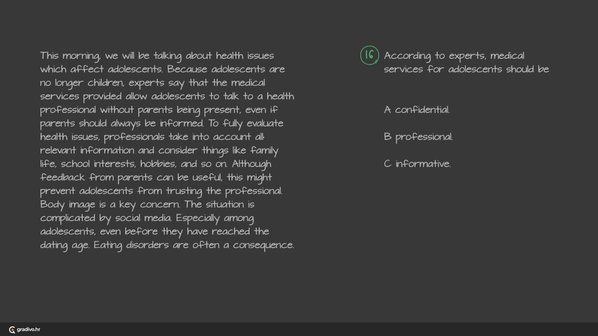 You will hear a radio programme about adolescent health issues.