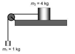 Trenje između tijela mase $m_{2}$ i stola, kao i trenje između niti i koloturnika mogu se zanemariti.