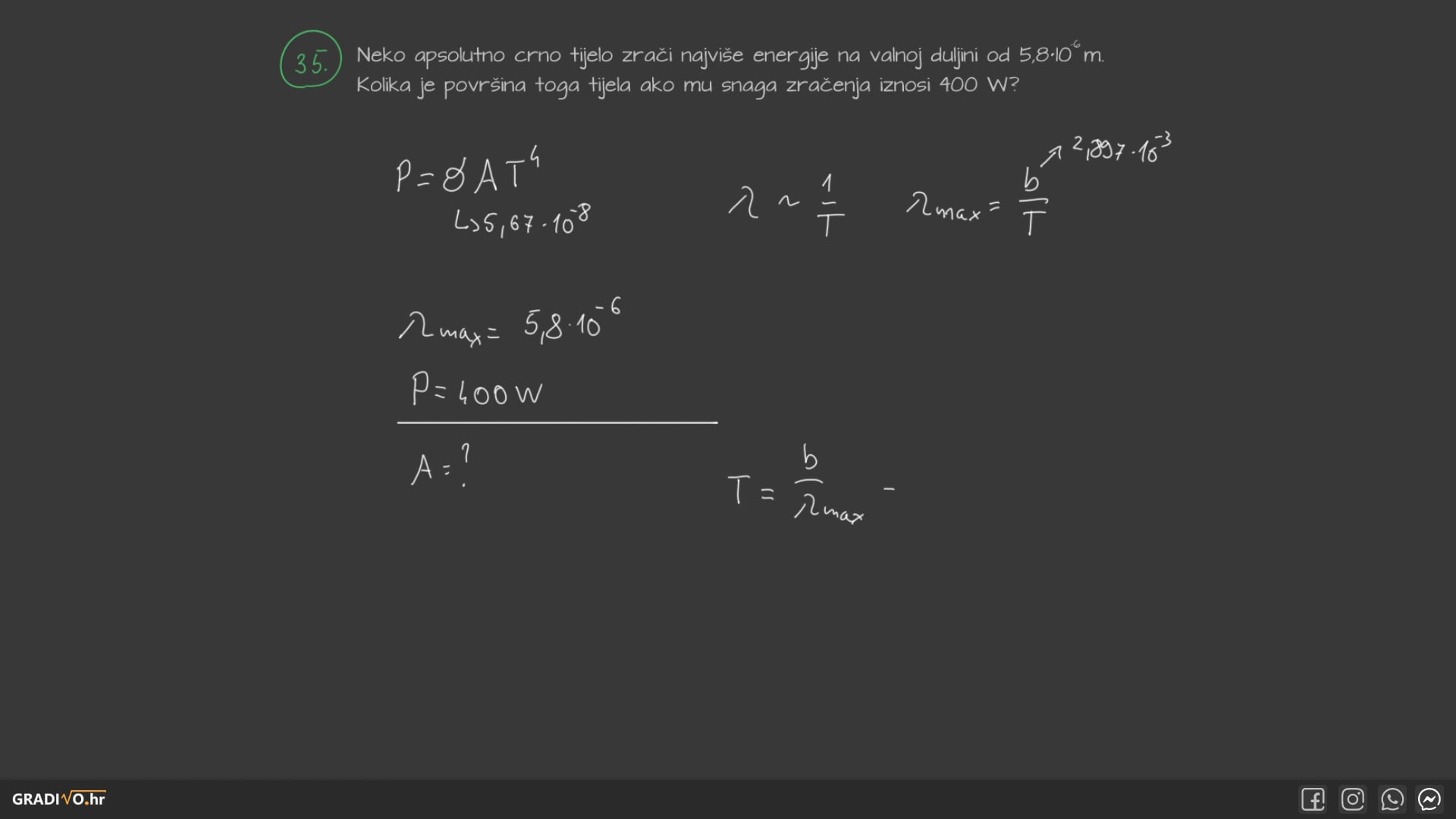 Kolika je površina toga tijela ako mu snaga zračenja iznosi 400 W?