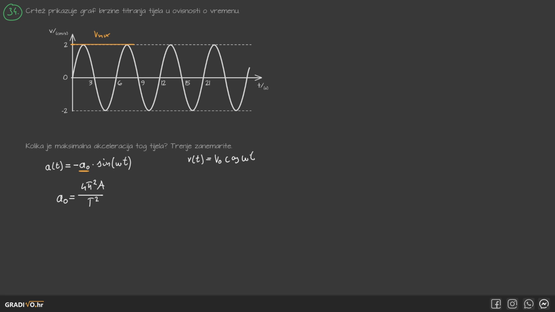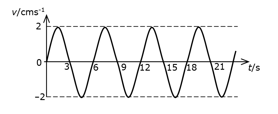 Crtež prikazuje graf brzine titranja tijela u ovisnosti o vremenu.