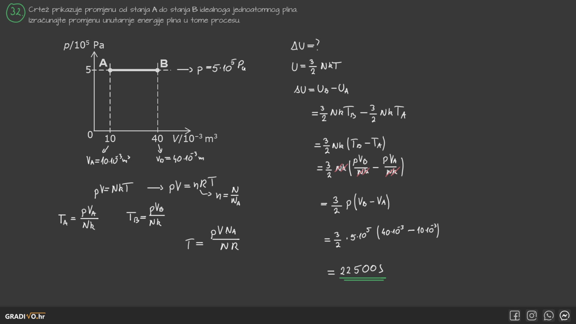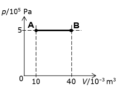 Crtež prikazuje promjenu od stanja A do stanja B idealnoga jednoatomnog plina. Izračunajte promjenu unutarnje energije plina u tome procesu.