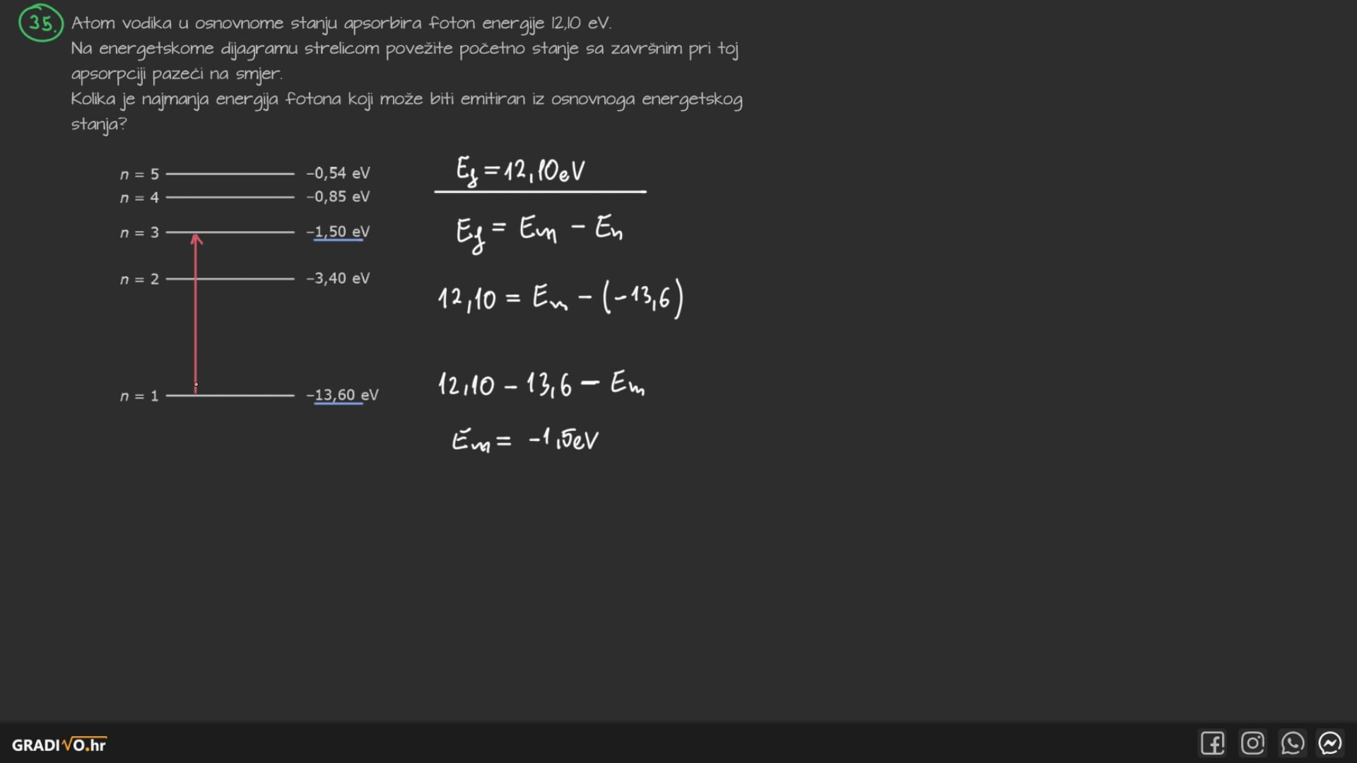 Na energetskome dijagramu strelicom povežite početno stanje sa završnim pri toj apsorpciji pazeći na smjer.