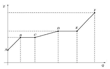 Graf prikazuje ovisnost temperature o dovedenoj količini topline za neku određenu masu tvari. Tvar se početno (točka A na slici) nalazi u čvrstome agregatnom stanju i zagrijavanjem postupno prelazi u plinovito stanje.