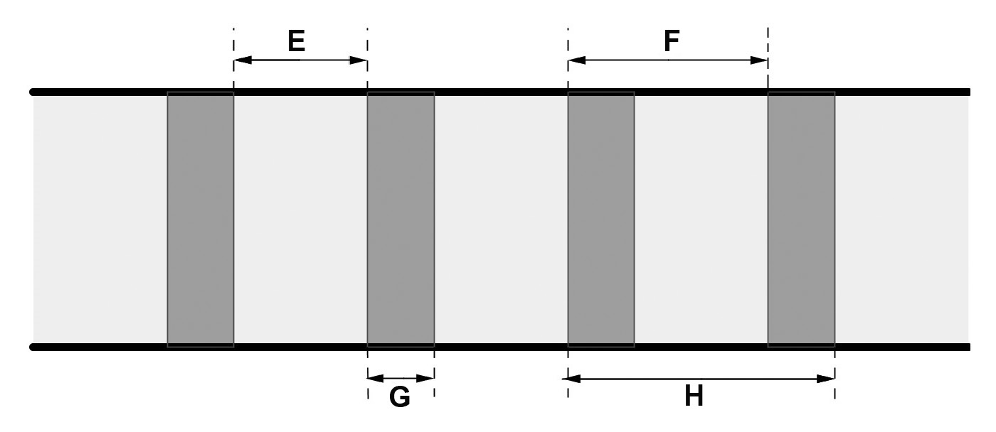 Na slici je prikazano širenje zvuka kroz sredstvo. Tamne i svijetle pruge označavaju zgusnaća i razrjeđenja sredstva pri širenju zvuka. Kojim je slovom ispravno označena valna duljina zvuka?
