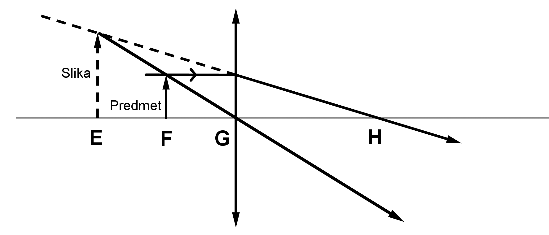 A. u točki $\mathbf{E}$