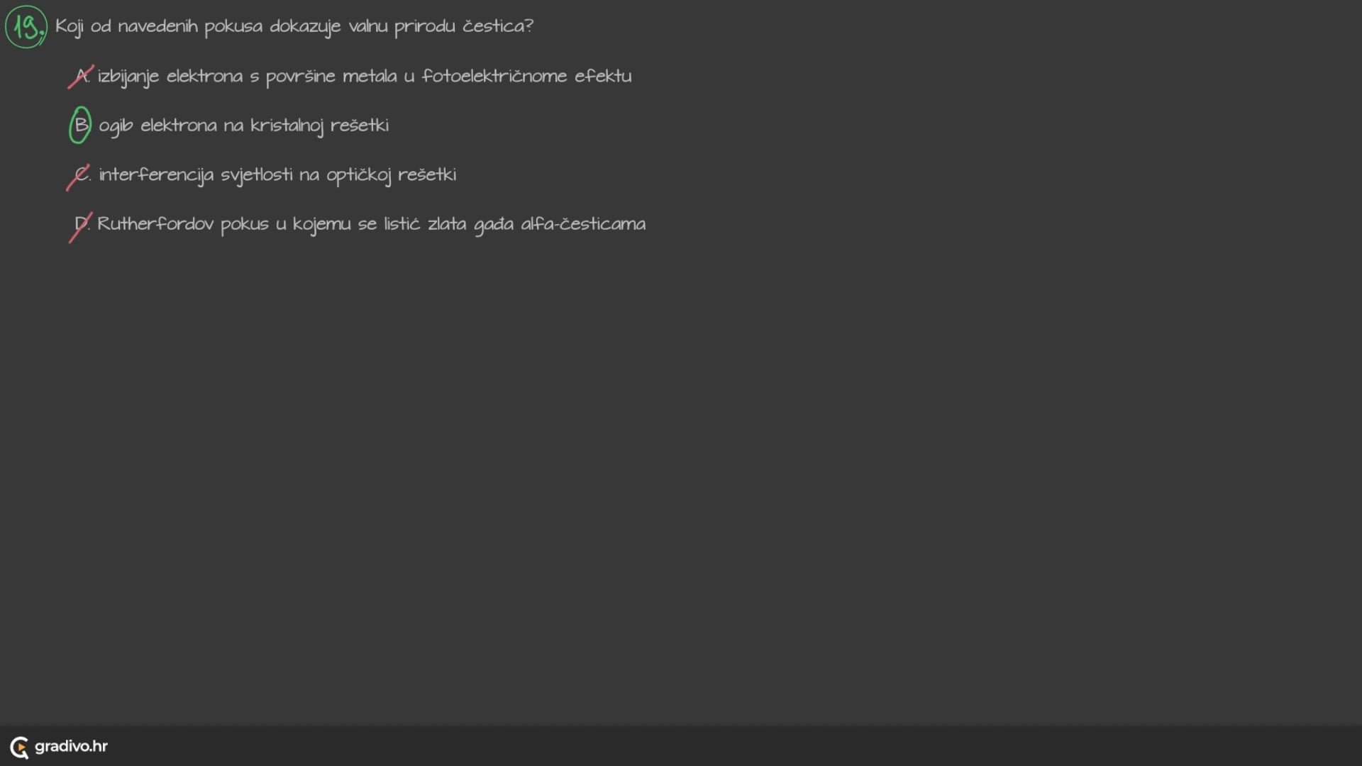D. Rutherfordov pokus u kojemu se listić zlata gađa alfa-česticama