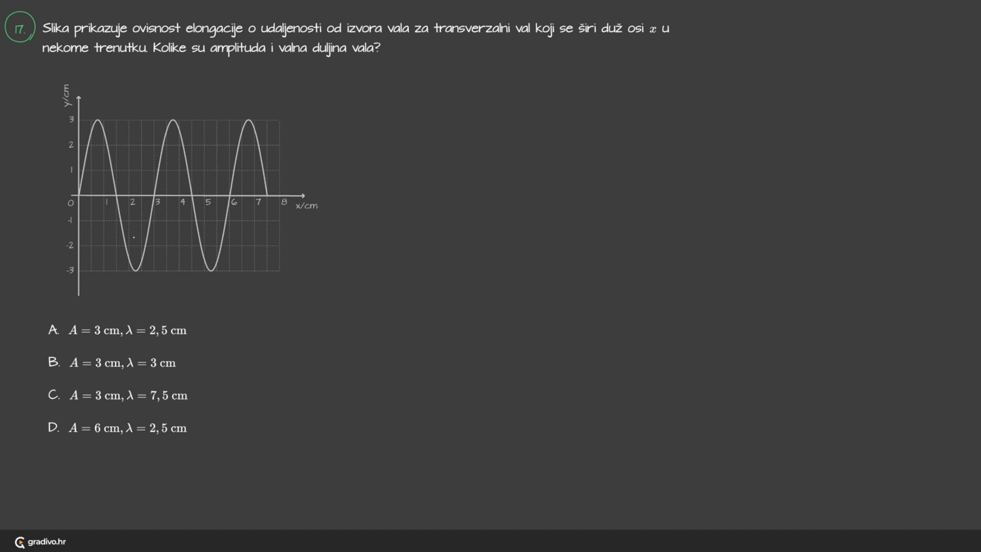 A. $A=3 \mathrm{~cm}, \lambda=2,5 \mathrm{~cm}$