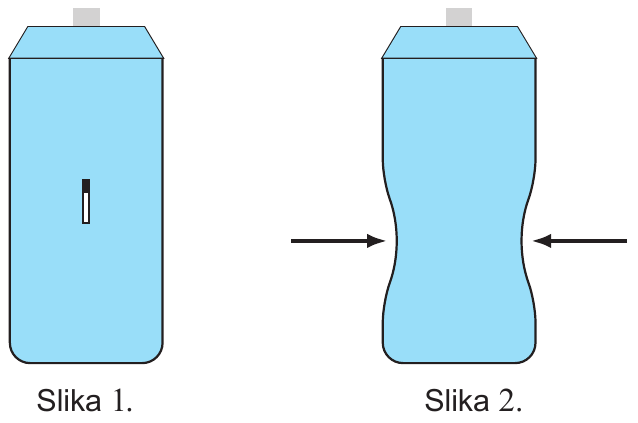 Koja je od navedenih tvrdnja točna kada se boca stisne kao na slici 2.?