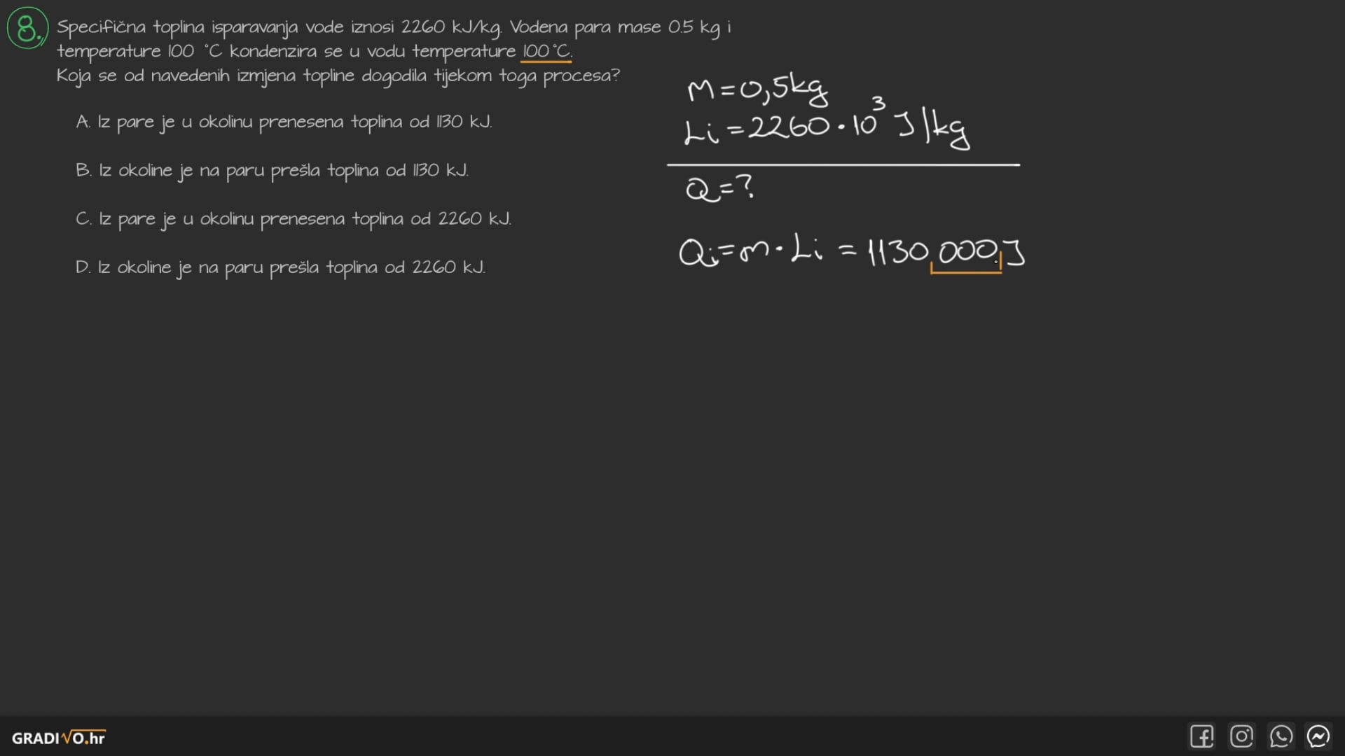 C. Iz pare je u okolinu prenesena toplina od 2260 kJ .