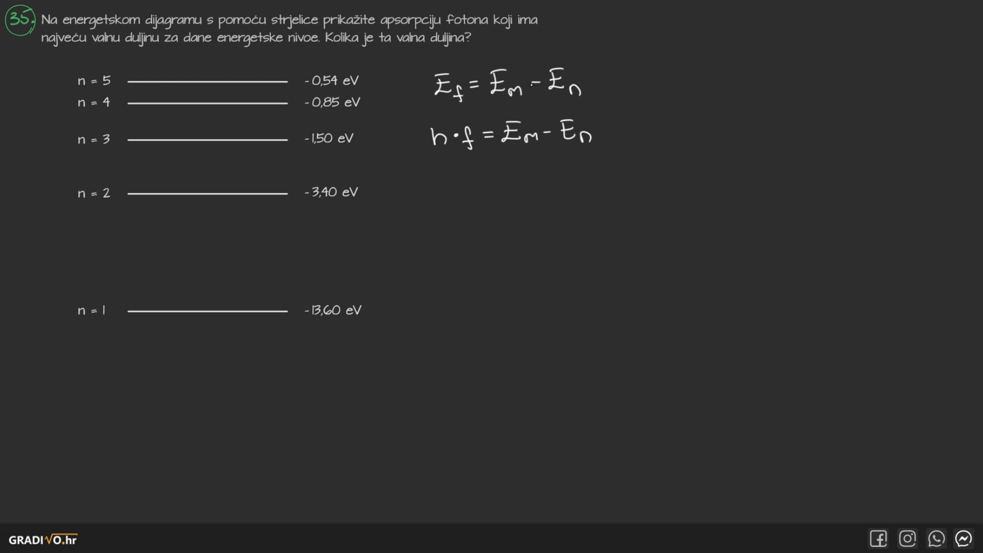 Na energetskom dijagramu s pomoću strjelice prikažite apsorpciju fotona koji imanajveću valnu duljinu za dane energetske nivoe.