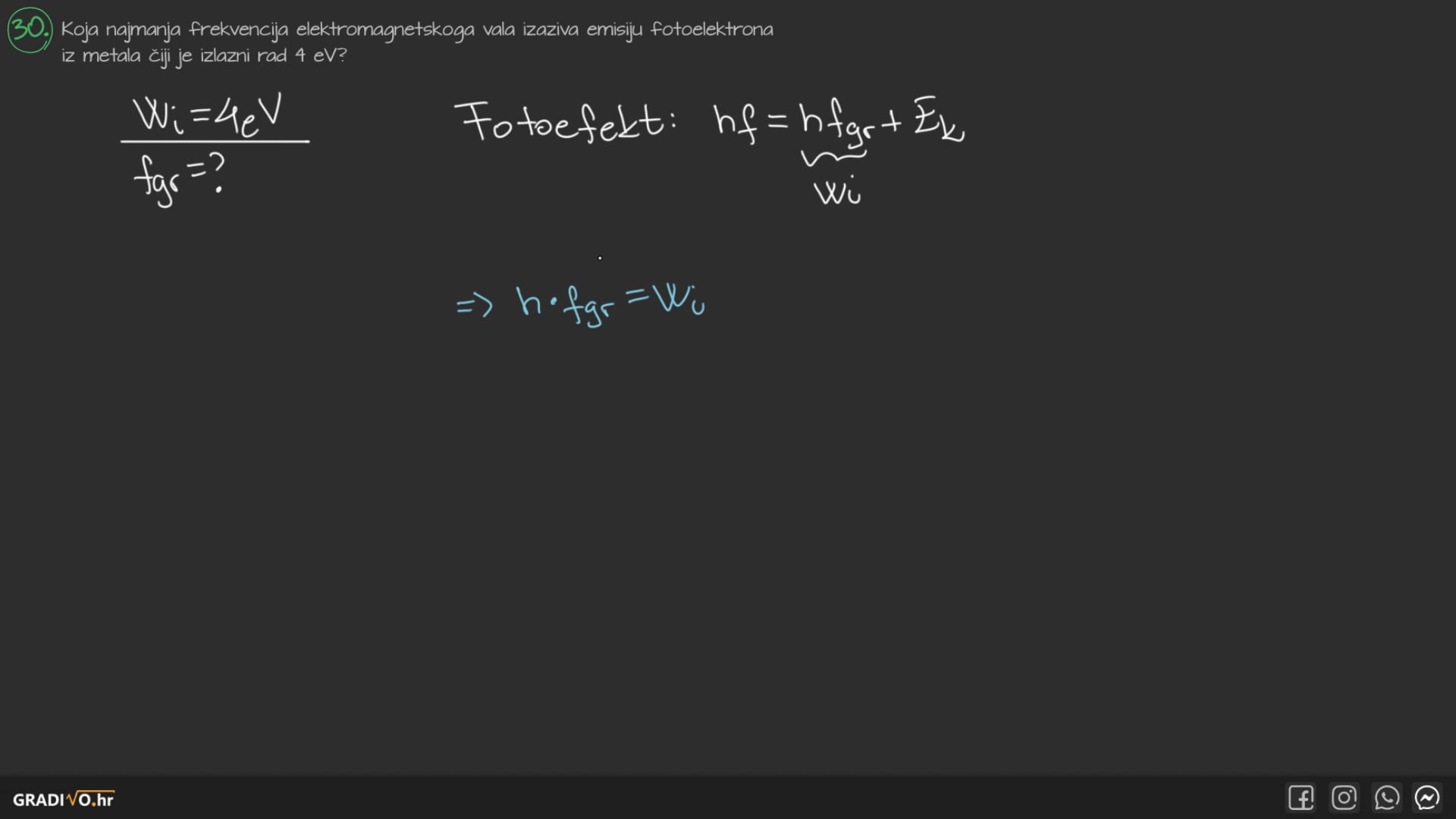 Koja najmanja frekvencija elektromagnetskoga vala izaziva emisiju fotoelektrona iz metala čiji je izlazni rad 4 eV ?