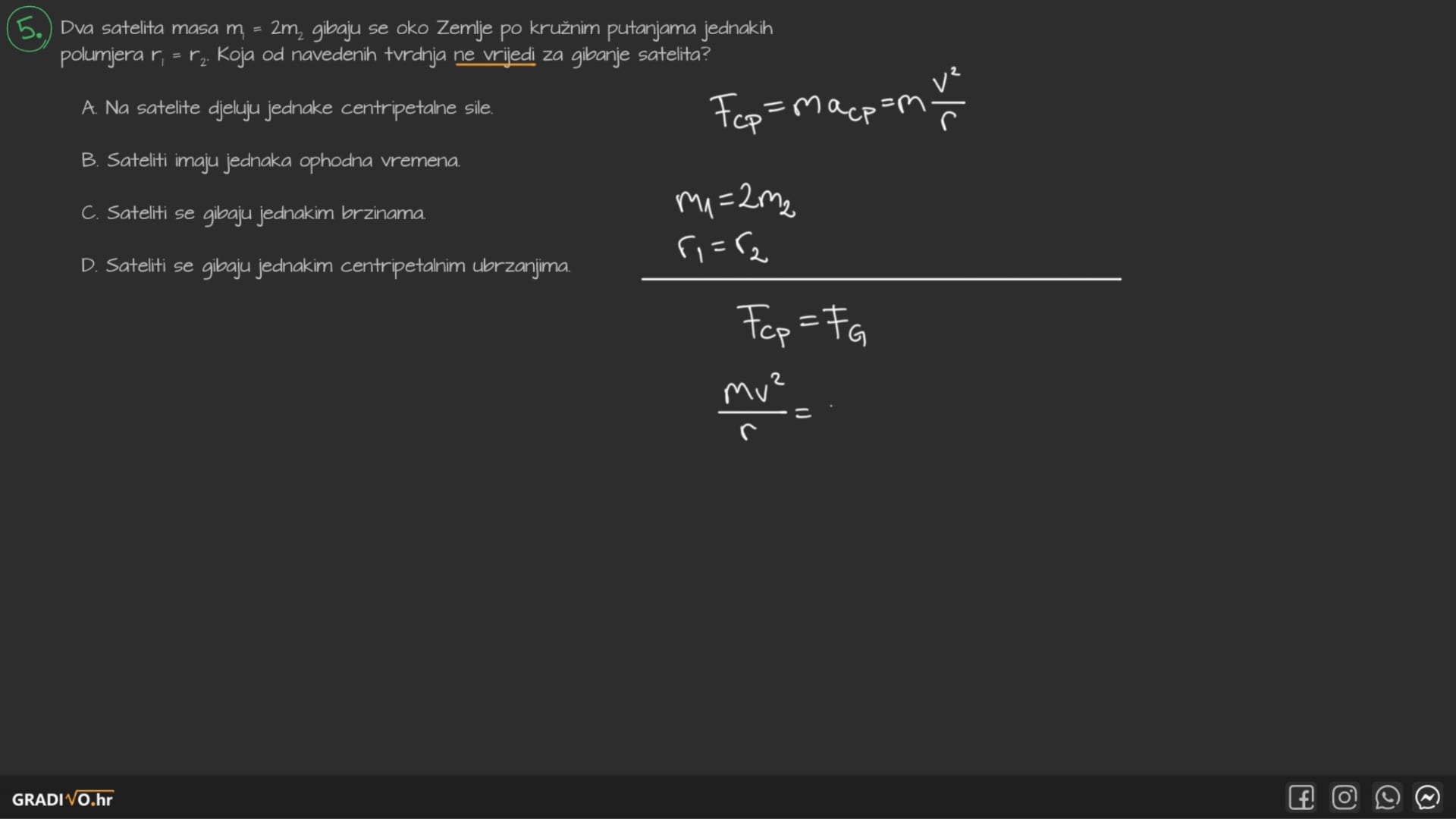A. Na satelite djeluju jednake centripetalne sile.