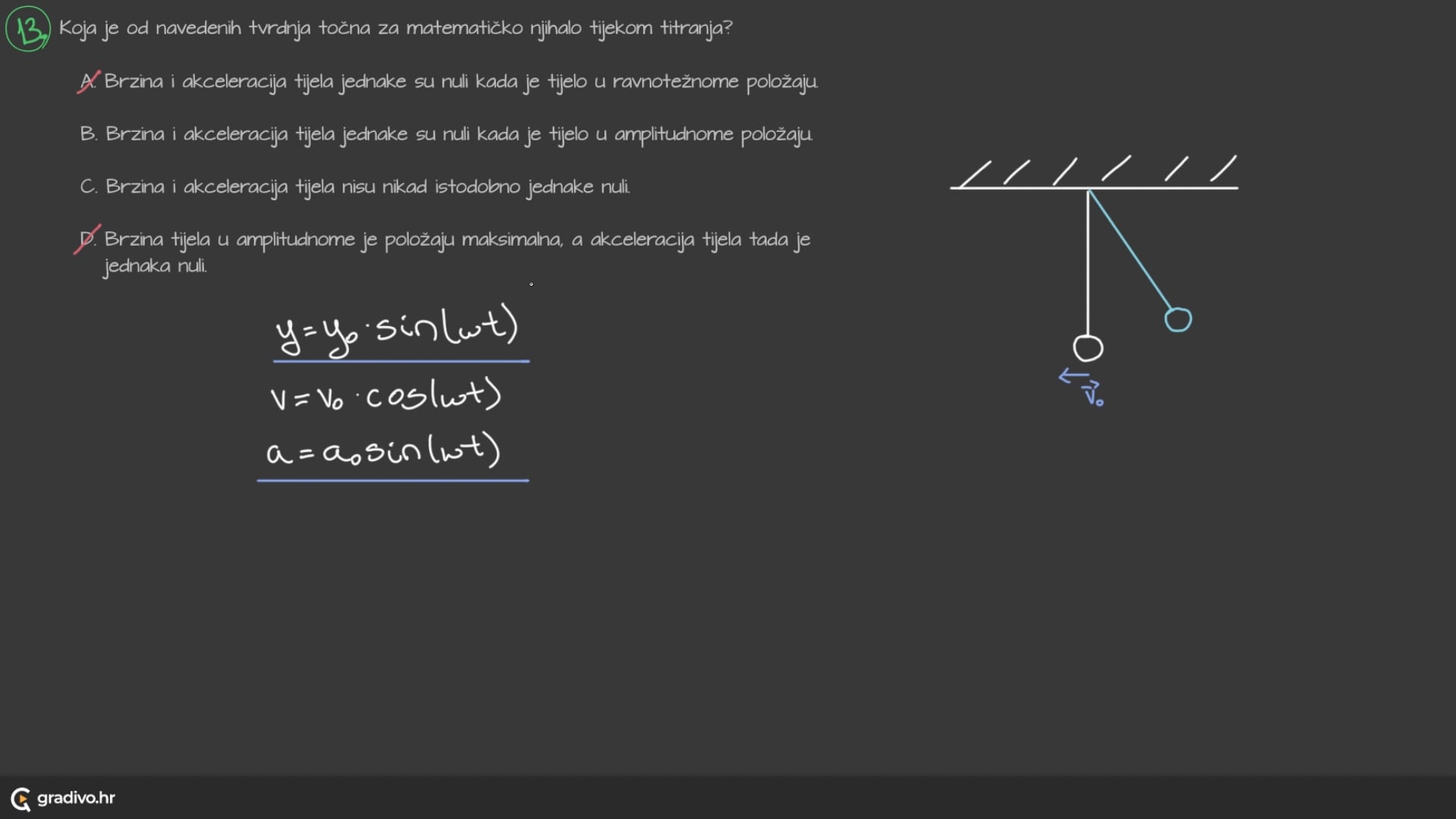 A. Brzina i akceleracija tijela jednake su nuli kada je tijelo u ravnotežnome položaju.