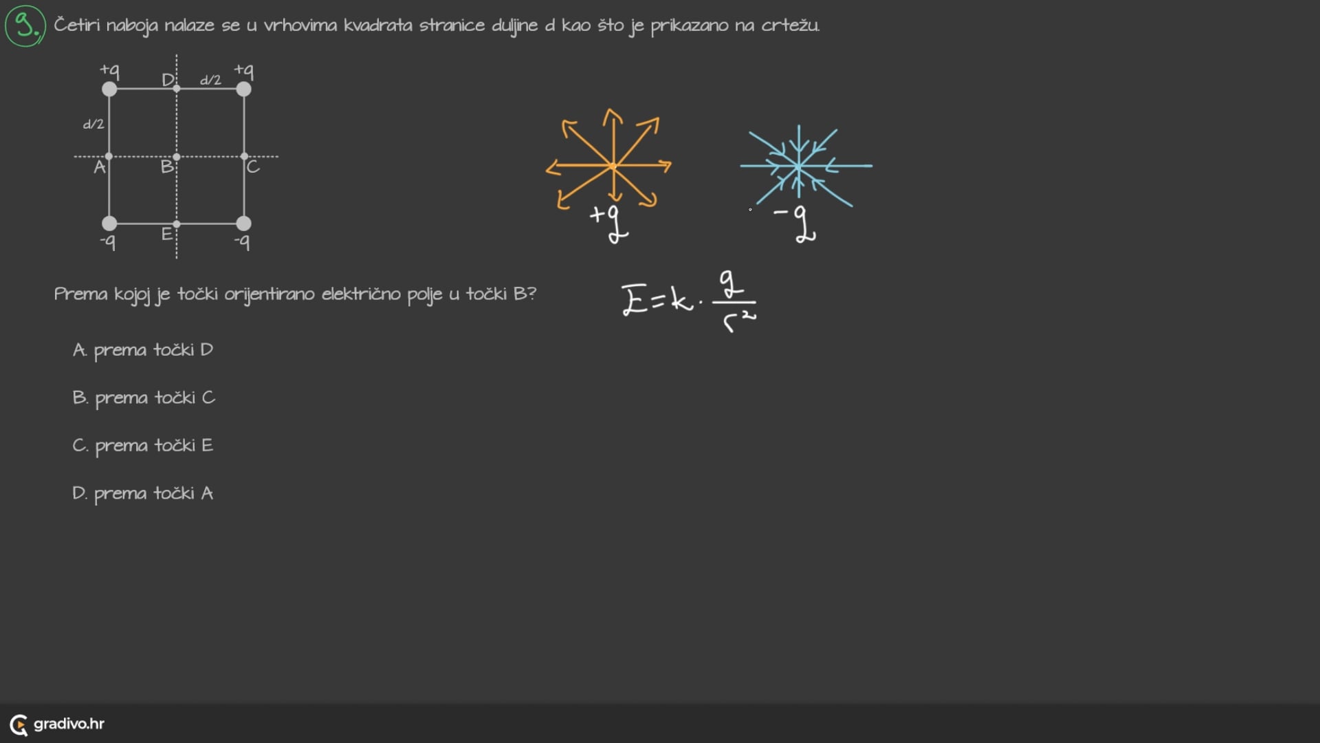 A. prema točki $\mathbf{D}$