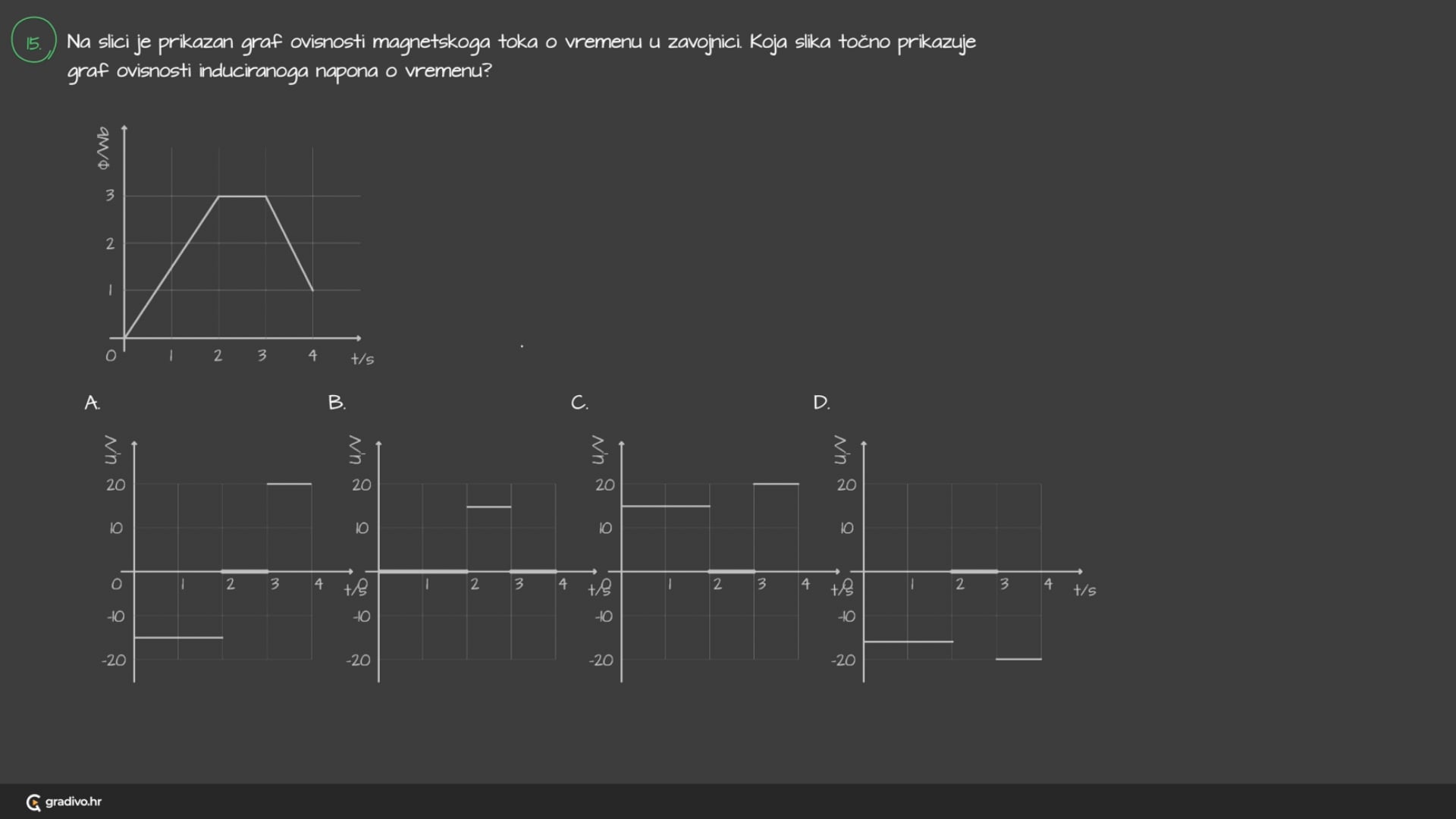 Koja slika točno prikazuje graf ovisnosti induciranoga napona o vremenu?