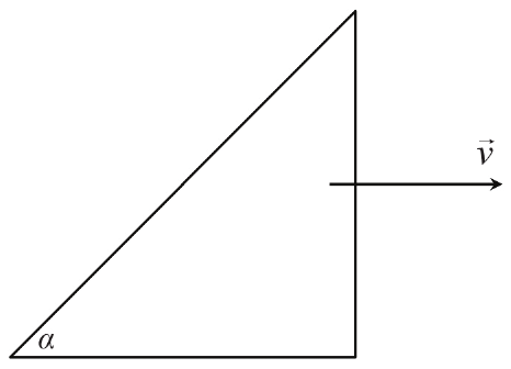 Na slici je prikazana pravokutna kosina vlastite duljine hipotenuze 2 m i vlastita kuta $\alpha=45^{\circ}$ koja se nalazi u svemirskome brodu koji se giba brzinom $0,866 c$ paralelno s bazom kosine. Koliku duljinu hipotenuze kosine i kut kosine mjeri mirni promatrač sa Zemlje?