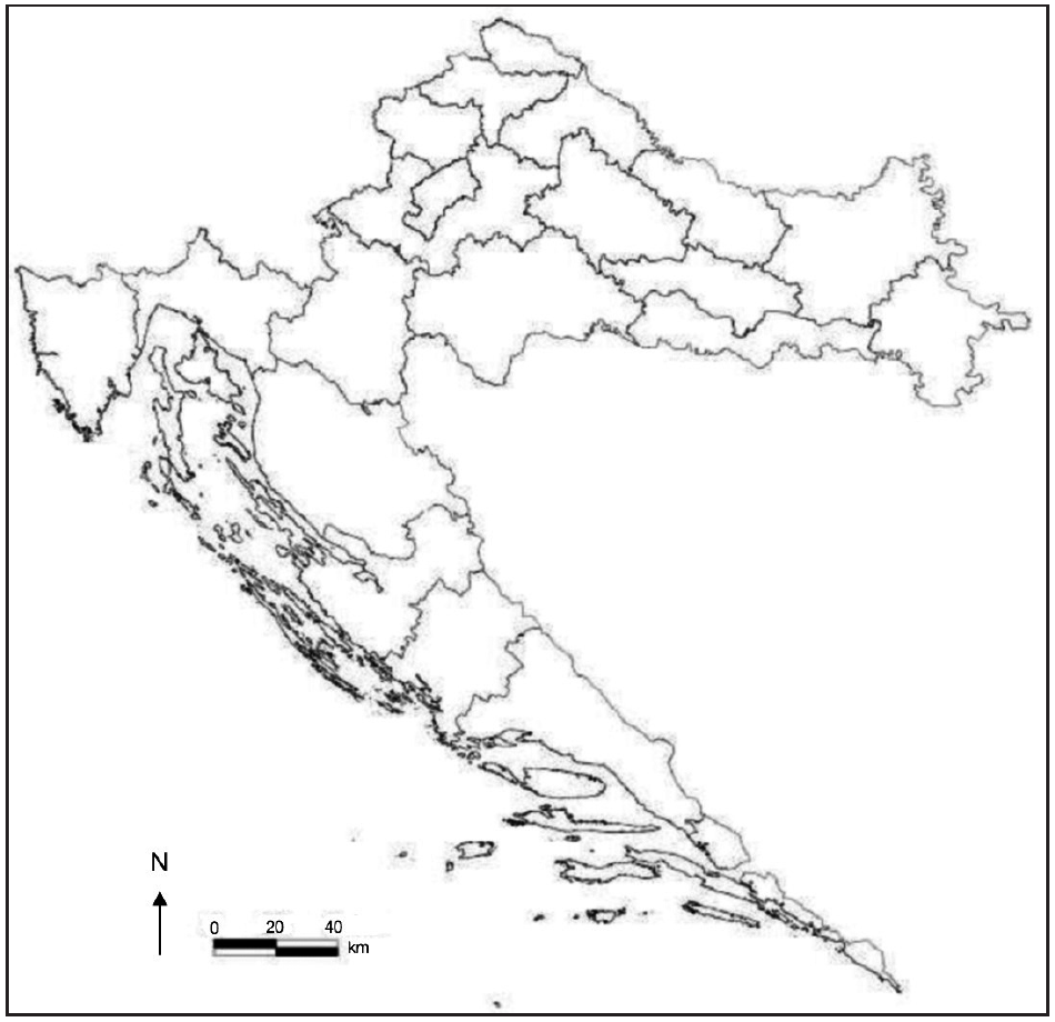 Sljedeće zadatke riješite analizom priložene slijepe karte županija Republike Hrvatske.