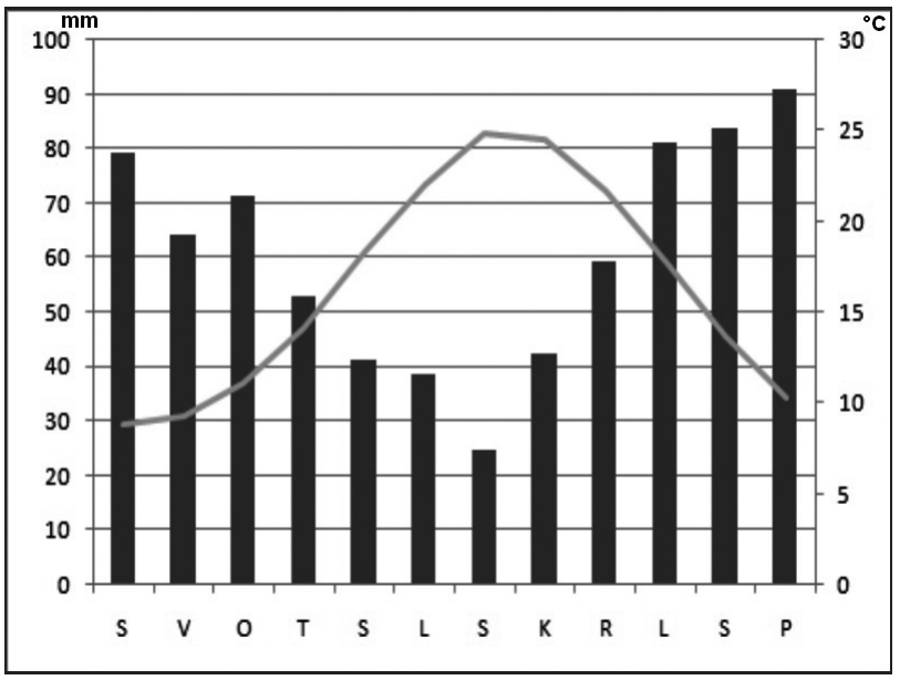Na priloženome klimatskome dijagramu prikazan je