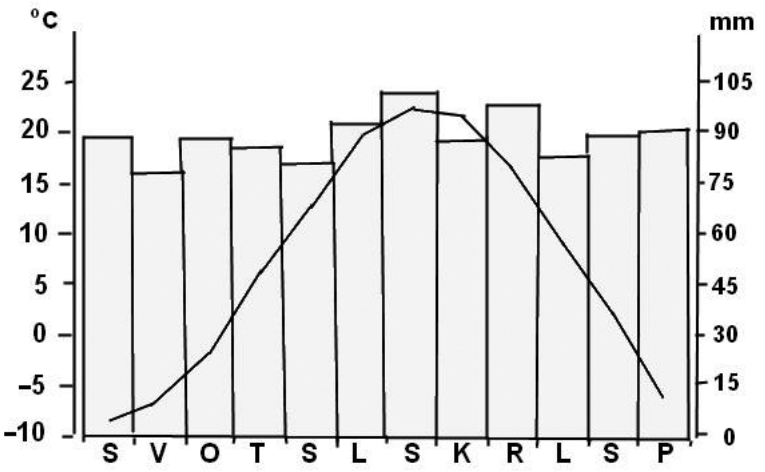 Koji je tip klime, prema Köppenu, prikazan na priloženome klimatskome dijagramu?