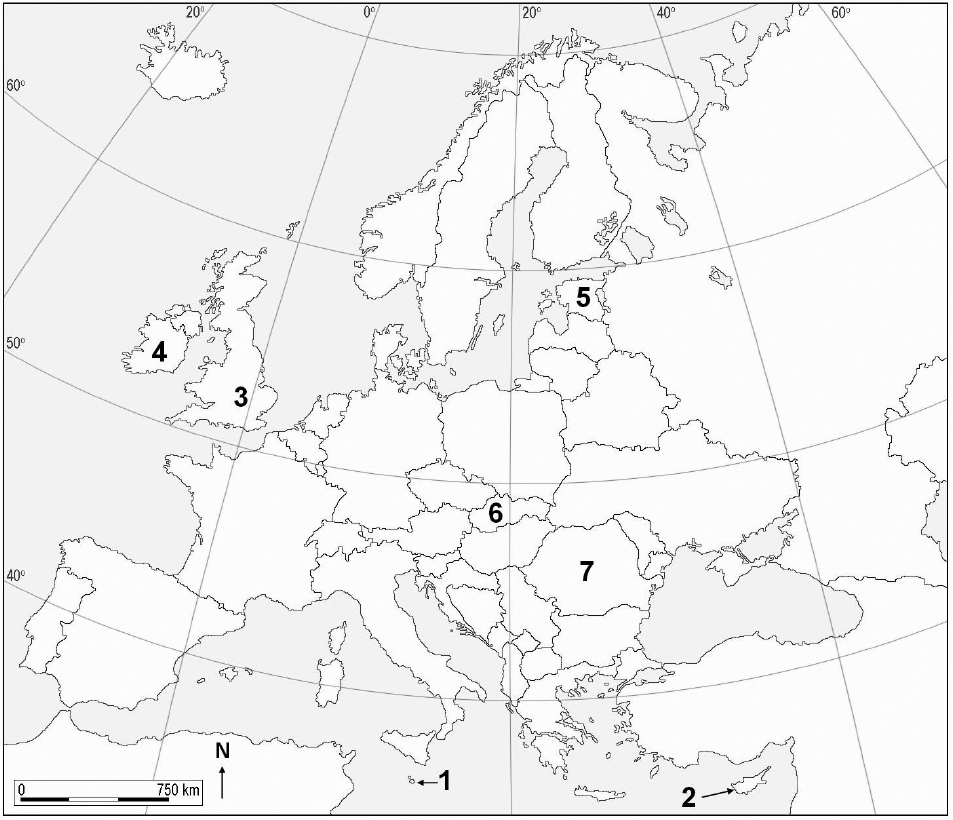 Sljedeće zadatke riješite uz pomoć priložene karte Europe na kojoj su brojevima od