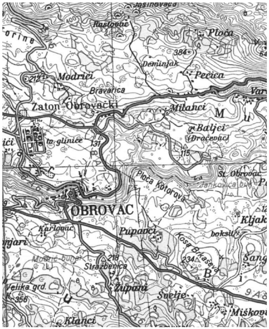 S priloženog isječka topografske karte precrtajte odgovarajuće topografske znakove.