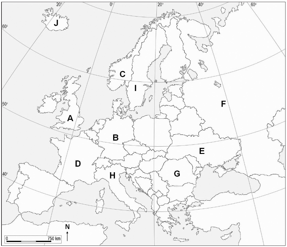 Sljedeće zadatke riješite s pomoću karte Europe na kojoj su slovima od