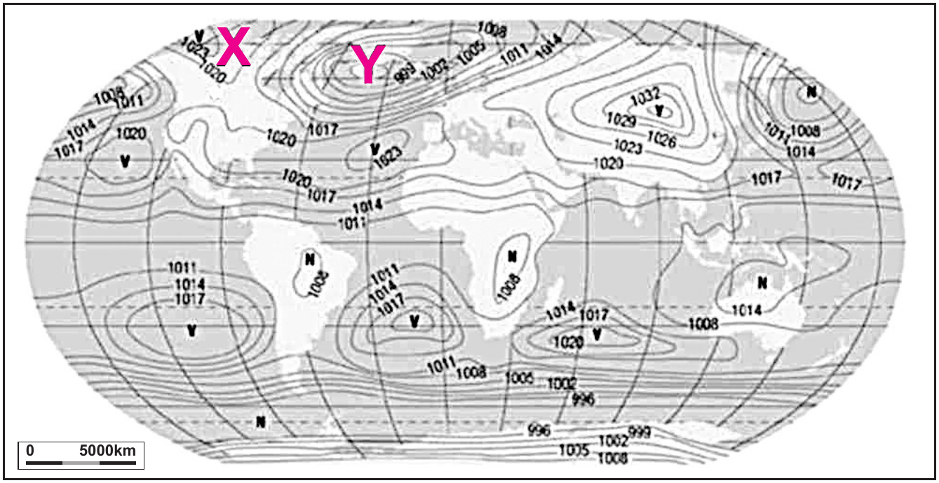 Riješite sljedeće zadatke s pomoću priložene tematske karte raspodjele tlaka zraka na Zemlji.
