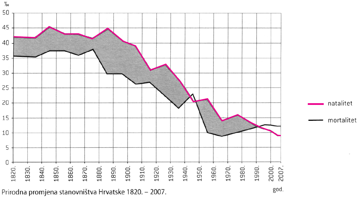 Riješite sljedeće zadatke s pomoću priloženoga dijagrama demografskoga razvoja.