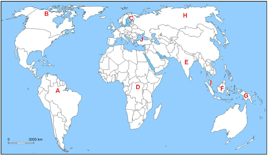 Zadatak riješite s pomoću priložene geografske karte svijeta.
