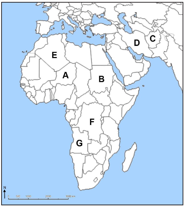Zadatak riješite s pomoću priložene geografske karte Afrike i Jugozapadne Azije.