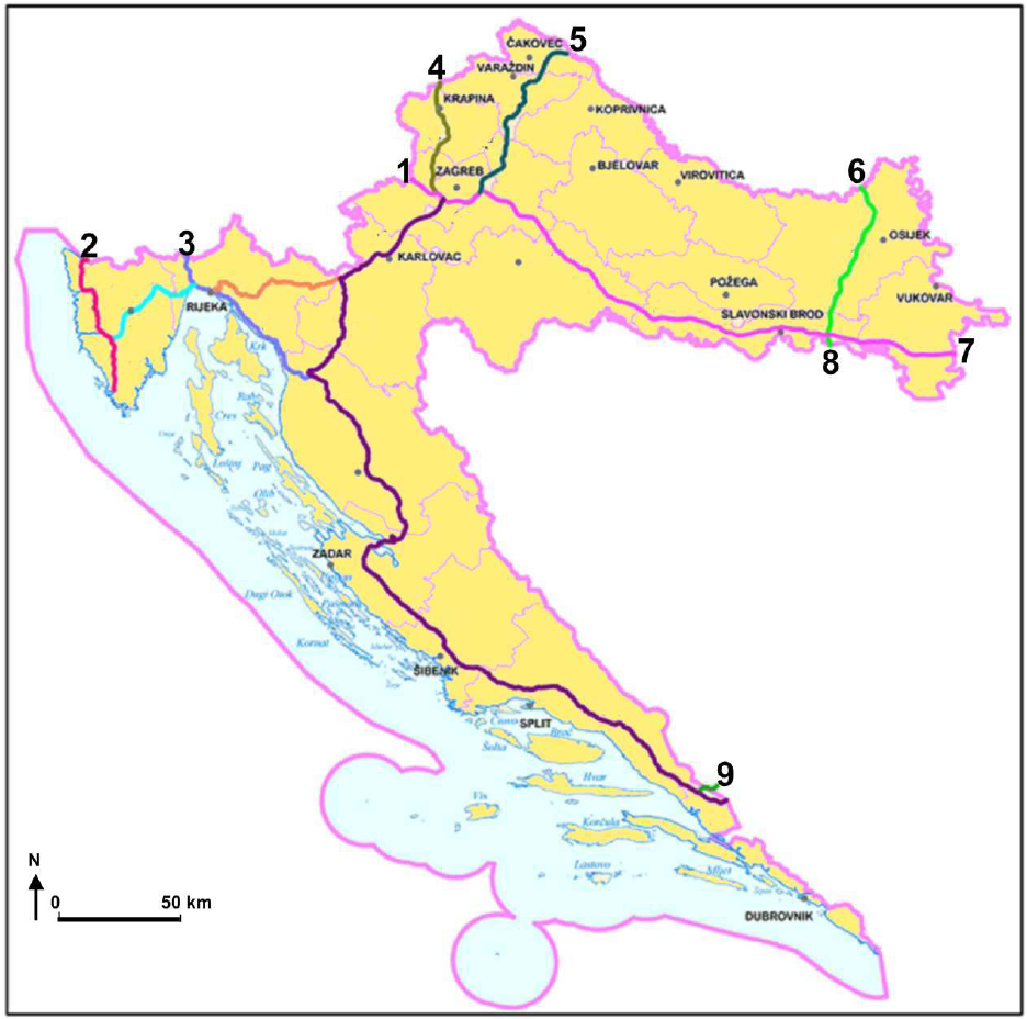 Riješite zadatak uz pomoć priložene geografske karte Republike Hrvatske.