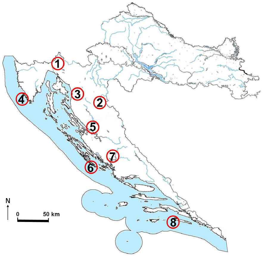 Riješite zadatak uz pomoć priložene geografske karte Republike Hrvatske.