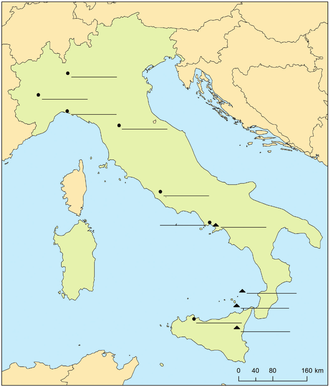 Pored odgovarajućega trokutića na priloženoj geografskoj karti upišite ime vulkana smještenoga u blizini grada Napulja.