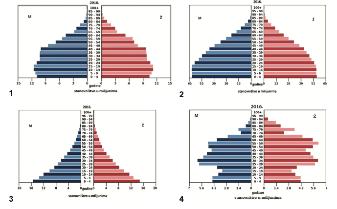 Kojim je brojem označen primjer dobno-spolne strukture stanovništva koji se odnosi na Indiju 2016. godine?