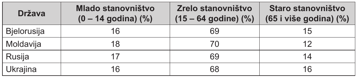Tab. 6. Dobna struktura stanovništva istočnoeuropskih država u tranziciji 2016. godine