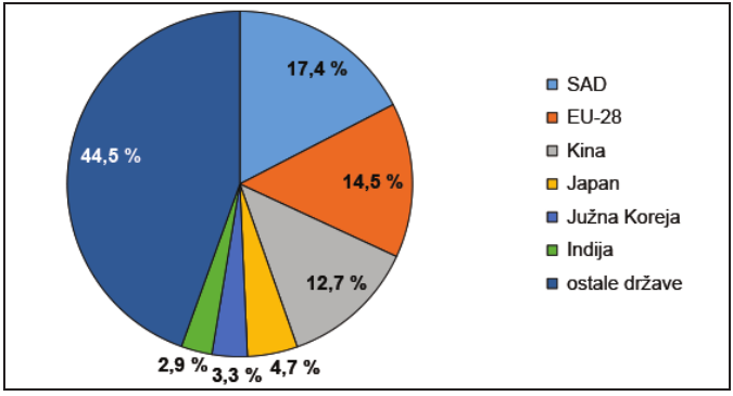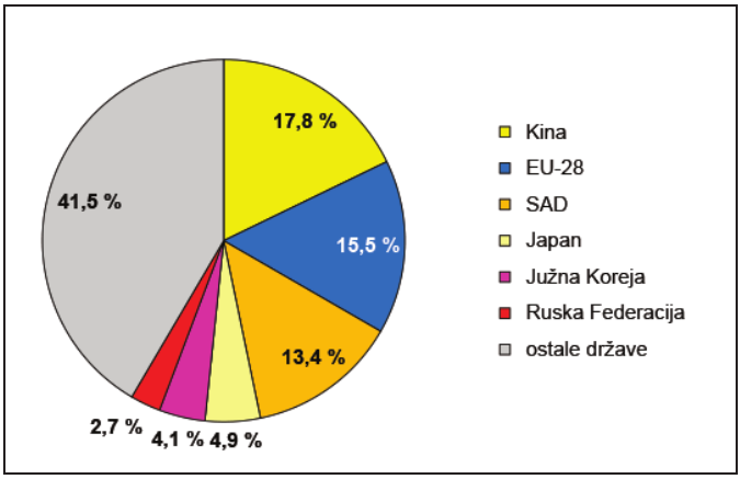 Udjeli u svjetskome izvozu robe 2015. godine